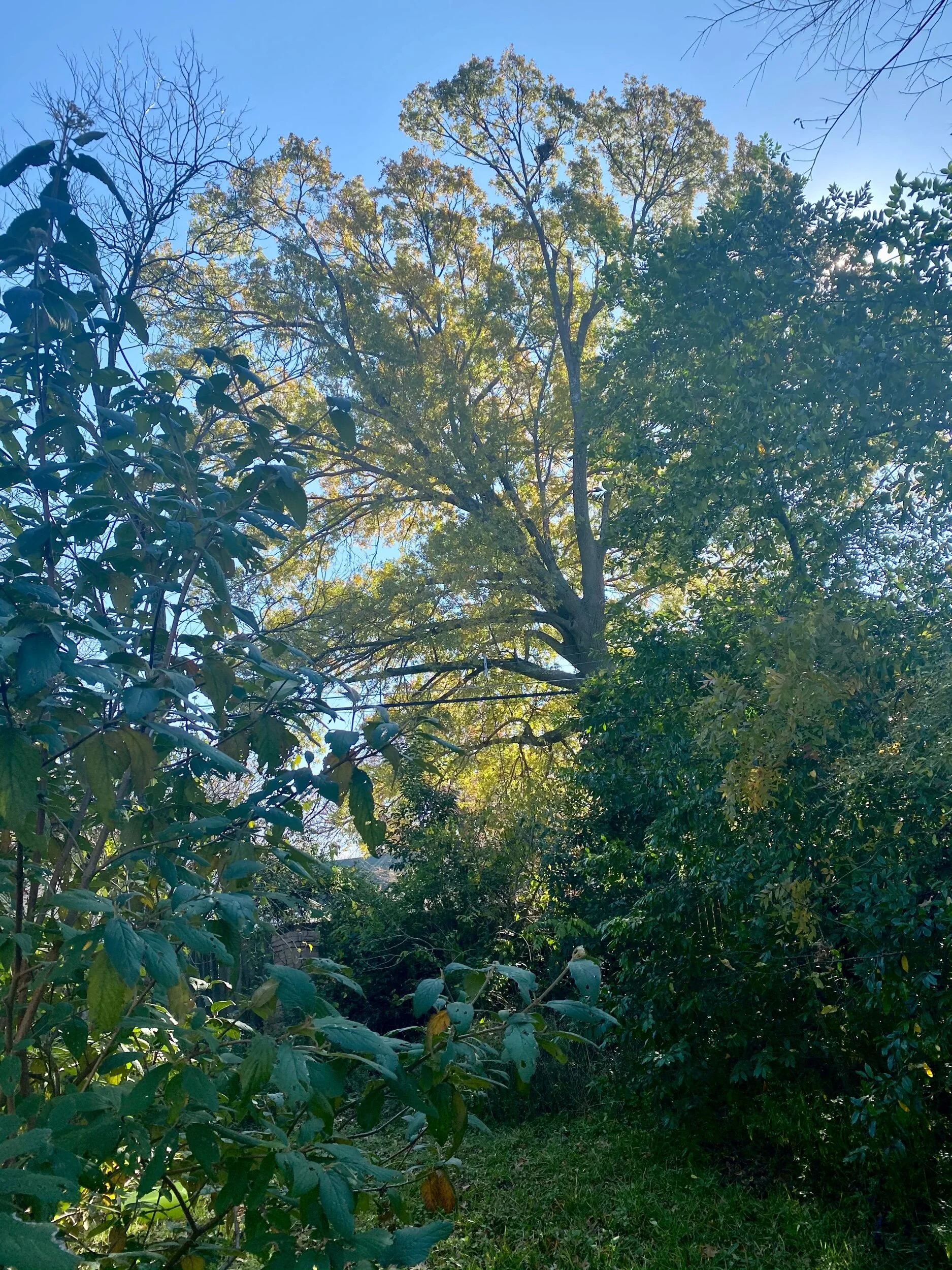 This red oak in the alley behind my house is beautiful even after what happened to it.